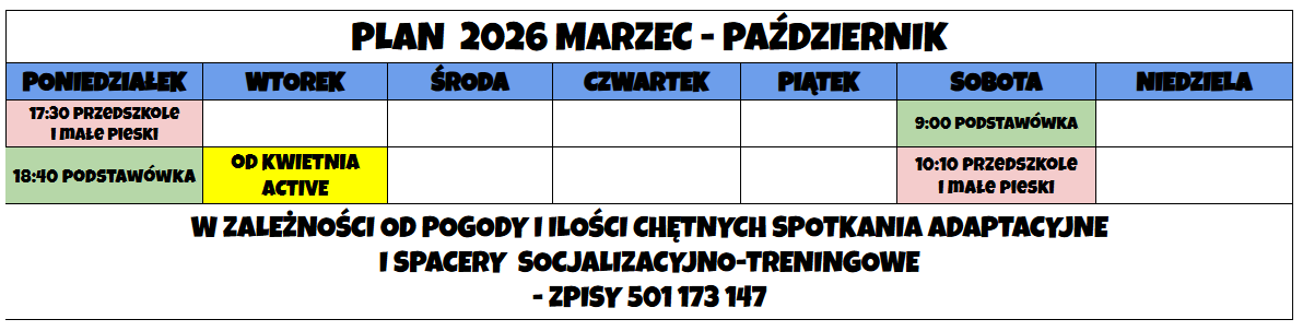 AKTUALNIE DO LUTEGO MAMY PRZERWĘ W REGULARNYCH ZAJĘCIACH GRUPOWYCH, ZAPRASZAMY NA WSPÓLNE SPACERY SOCJALIZACYJNO-TRENINGOWE